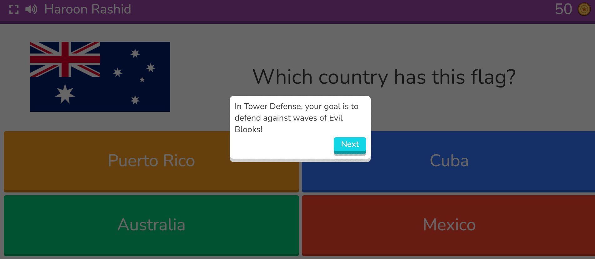 After every four questions, you will enter the game to earn points. Points may be in the form of Pounds, Coins, Gold, Bitcoin, Money, or other items, depending on your game type. For Example, for a hacking game, you have to choose a card and collect bitcoins. If the card shows steal, it means you have to guess the other player’s password to steal their wallet.