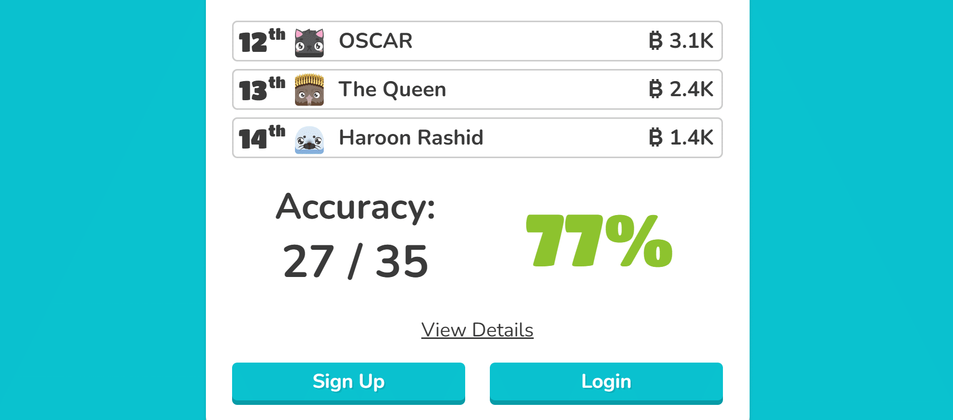 Each game is of 5 minutes, after that leaderboard will appear where you can check your rankings.