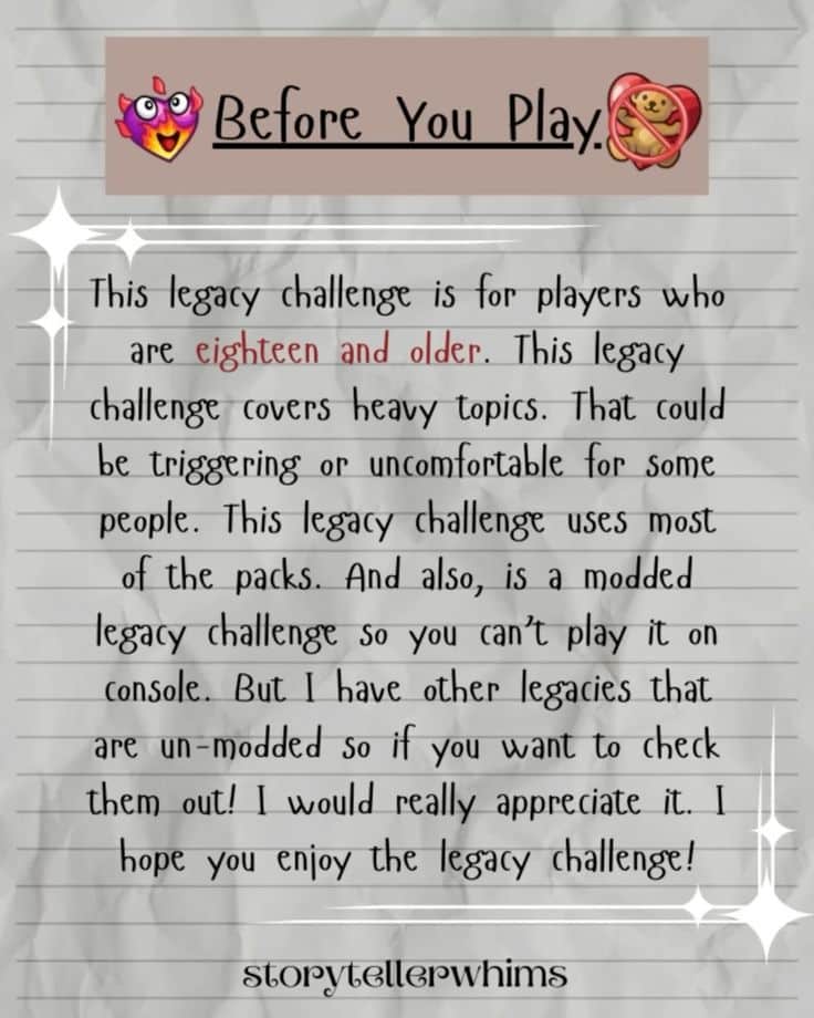 It’s completely acceptable to modify rules for your enjoyment. Hate toddlers? Skip them in your Legacy (though you’ll lose points). Find the pregnancy length absurd? Use MCCC to adjust it. Your game, your rules—literally.