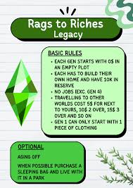 Hate how easy money is? Create a challenge banning specific careers or limiting income sources. Love occult Sims? Design a challenge requiring specific supernatural achievements across generations. Obsessed with tiny homes? Build restrictions around lot sizes and item counts.